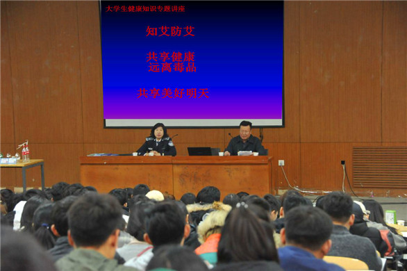 11月28日,山东省戒毒监测治疗所副所长孙玉梅率该所“拒毒防艾”宣讲团一行四人来校为学生作宣讲报告。副院长韩世春会见宣讲组成员,感谢警官们为永利官网学生上人生中重要的一课,并与宣讲团成员就如何做好大学生拒毒防艾工作进行交流。报告会由后勤处与学生处共同主办,后勤党总支书记刘慎华主持。