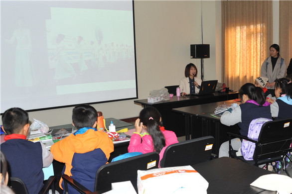 参观结束后,“上合青岛峰会”服装设计师高瑞彤老师为同学们上了一堂别开生面的服装设计体验课,她首先讲解了服装设计的流程等基本知识,随后带领同学们利用废旧面料、扣子等装饰物动手制作服装效果图,同学们充分发挥自己的想象力,按照自己喜欢的款式进行搭配,画、剪、拼、贴,制作出了个性鲜明、创意十足、各具特色的效果图,得到了高瑞彤老师的高度肯定。