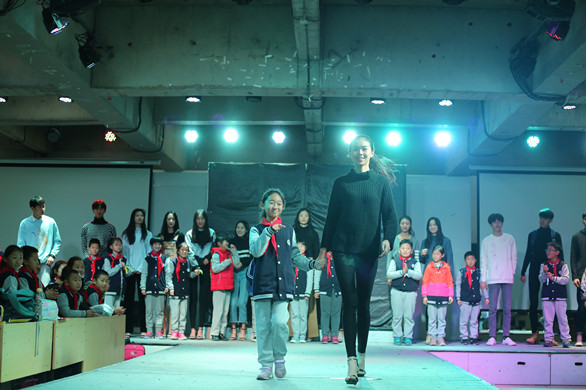 最后,同学们来到服装表演训练室,欣赏了在校大学生精彩的时装表演,同学们按捺不住激动的心情,纷纷上台与大学生们同走T台,体验了一把做“超模”的感觉。