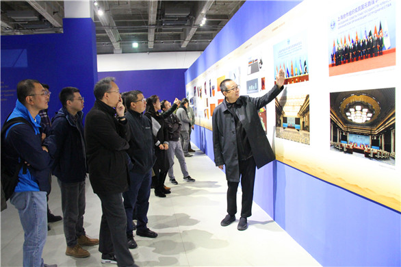 校领导陪同考察团一行实地考察了永利官网美术馆、博物馆、数字艺术与传媒实验中心、现代手工艺术实验中心、设计师广场等,参观了正在展出的《第七届济南国际摄影双年展》、《“和合之美”上合组织青岛峰会艺术创意设计特展》、《中国画提名展》、《“爱校如家”师生校友作品联展》等展览。