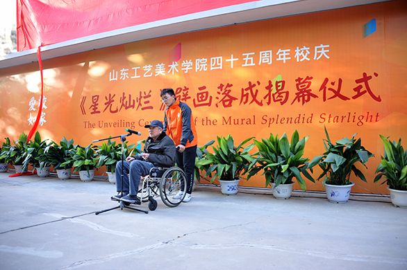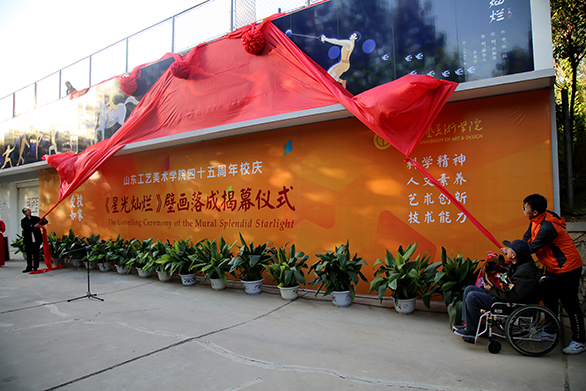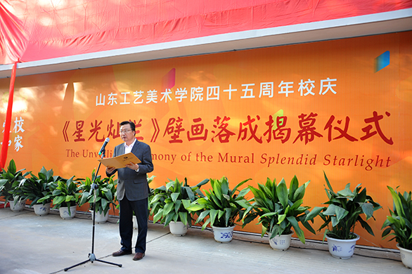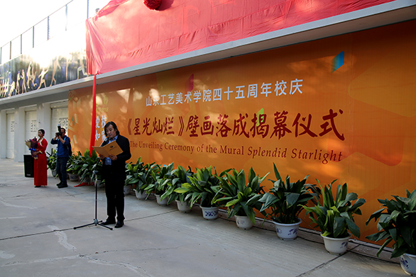 10月26日下午,“爱校如家”yl8cc永利官网45周年校庆系列活动之《星光灿烂》壁画落成揭幕仪式在长清校区举办。学校党委书记何思清,院长潘鲁生,党委副书记苗登宇,副院长李新,纪委书记苗新民,副院长董占军、韩世春,原yl8cc永利官网院长、教授张一民出席仪式。仪式由苗登宇主持。