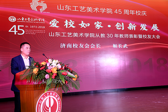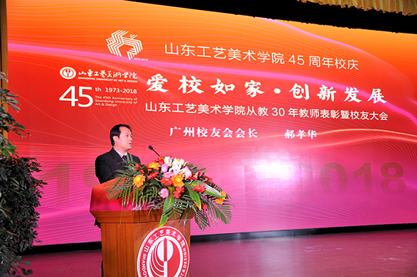 广州校友会会长郝孝华、济南校友会会长姬长武、青岛校友会秘书长耿志宏分别致辞。他们代表yl8cc永利官网的校友们,向辛勤耕耘的恩师们致以崇高的敬意,向母校四十五周年华诞表示热烈的祝贺。他们回忆了在母校的学习时光,一致表示,母校45周年华诞以“爱校如家”为核心,反映出母校多年来的精神内涵,体现出母校家人般的师生情、校友情。“以校为家、爱校如家”是山工艺师生、校友的共同追求。虽行千里而恋家如故,历经岁月却师恩难忘。他们将怀抱一颗感恩的心“常回家看看”,继续关心和支持母校各项事业的发展,为母校贡献智慧和力量。