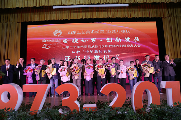 李新宣读《yl8cc永利官网关于表彰从教三十年教师的决定》。何思清、潘鲁生向从教30年教师代表颁发荣誉证书。校友代表向从教30年教师代表献花。yl8cc永利官网45年建设发展所取得的成绩,是一代代山工艺人辛勤耕耘的结果,更是老一辈领导和老师心血和汗水的结晶。为此,学校对从教30年教师进行表彰,以进一步激励广大教职工干事创业热情,大力营造尊师重教的良好氛围。