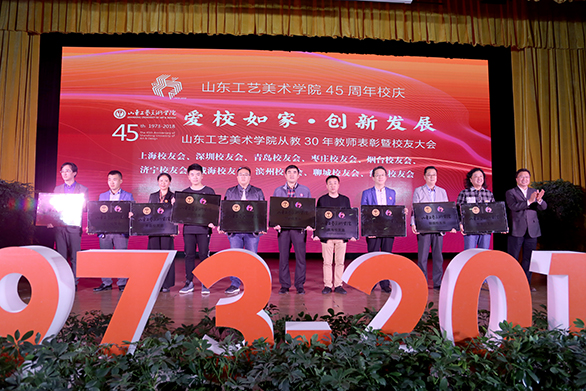 潘鲁生向北京校友会、广州校友会、济南校友会、淄博校友会、东营校友会、潍坊校友会、泰安校友会、日照校友会、德州校友会、临沂校友会、莱芜校友会授予匾牌。