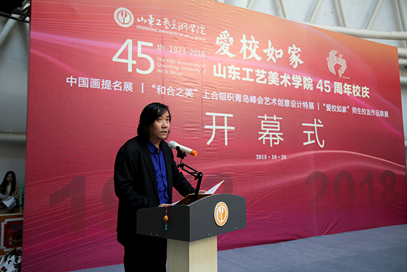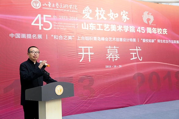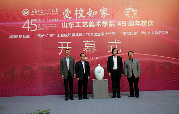 10月26日上午,“爱校如家”yl8cc永利官网45周年校庆系列活动之《中国画提名展》、《“和合之美”上合组织青岛峰会艺术创意设计特展》、《“爱校如家”师生校友作品联展》在长清校区开幕。党委书记何思清,院长潘鲁生,党委副书记苗登宇,副院长李新、董占军、韩世春出席开幕式。开幕式由李新主持。