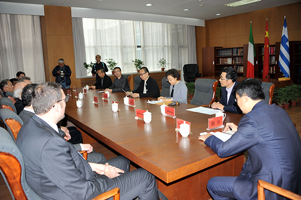 院长潘鲁生为意大利米兰国际艺术中心艺术总监、著名策展人马戴奥•劳伦佐利颁发聘任证书