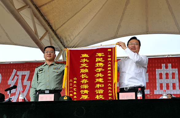 潘鲁生向齐鲁工业大学赠送锦旗;何思清向部队赠送锦旗。