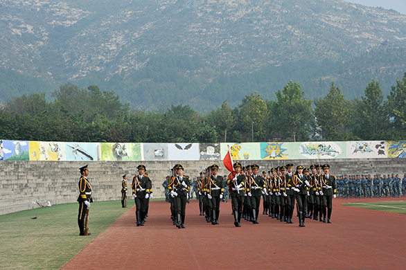 部队教官,学校有关部门、各二级学院负责人,新生辅导员,2018级新生参加典礼。