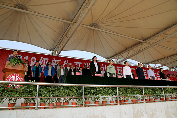 典礼在庄严的国歌声中拉开帷幕。2018级新生进行了军训汇报表演。