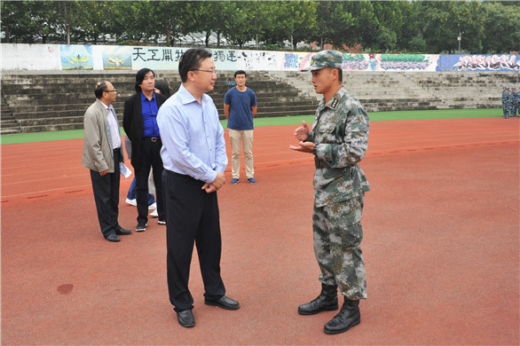 视察过程中,何思清指出,军训是大学生活的新起点,是国防教育的重要内容,也是大学教育的必修课,虽然很辛苦,但必将会成为每一位新生难忘的记忆。希望承训教官能将军人严明的纪律、坚强的意志和过硬的作风教授给学生,帮助学生尽快适应大学环境;希望全体参训新生继续发扬坚韧顽强、吃苦耐劳、团结协作的精神品质,认真接受训练,顺利完成军训任务。