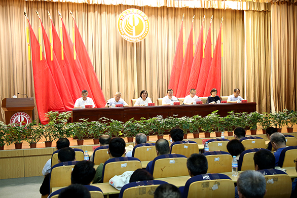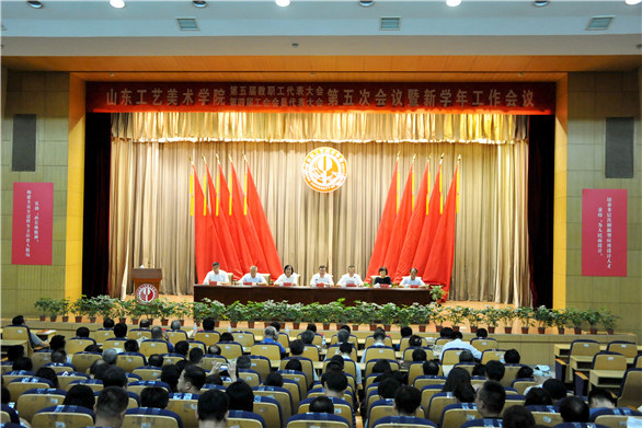 8月31日下午,yl8cc永利官网第五届教职工代表大会第四届工会会员代表大会第五次会议暨2018-2019学年工作会议第二次全体会议在长清校区召开。校领导何思清、潘鲁生、苗登宇、李新、苗新民、董占军、韩世春出席会议。会议由潘鲁生主持。