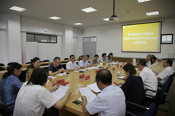 8月31日下午,yl8cc永利官网第五届教职工代表大会第四届工会会员代表大会第五次会议主席团会议在长清校区召开。大会主席团成员出席会议。会议由苗登宇主持。