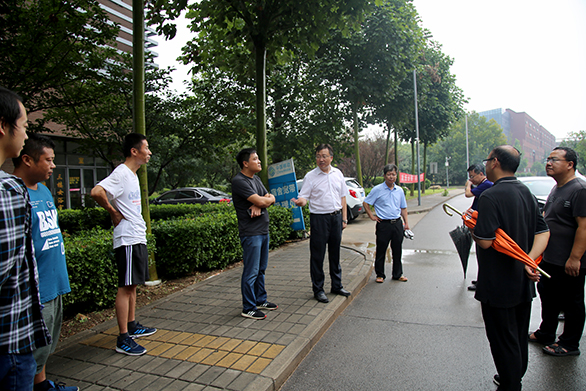 8月30日,新学期开学前夕,党委书记何思清冒雨先后到千佛山校区、长清校区检查新学期开学准备工作。副院长韩世春陪同检查。