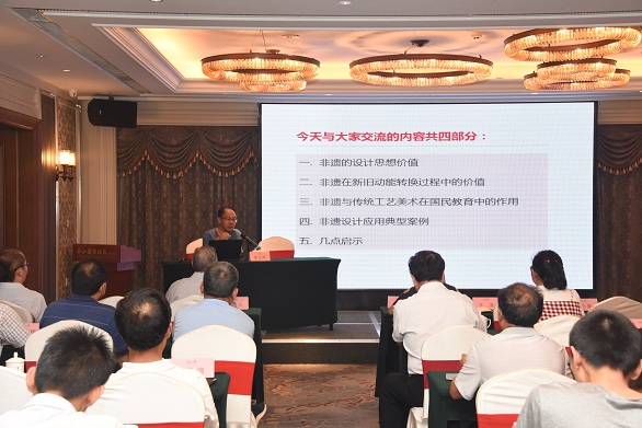 8月21日,副院长董占军教授为全省传统工艺融入新旧动能转换工程系列培训班作《非遗的思想与应用价值》专题讲座,继续教育学院院长王传东主持讲座。