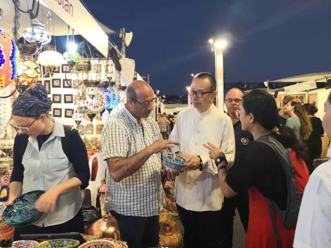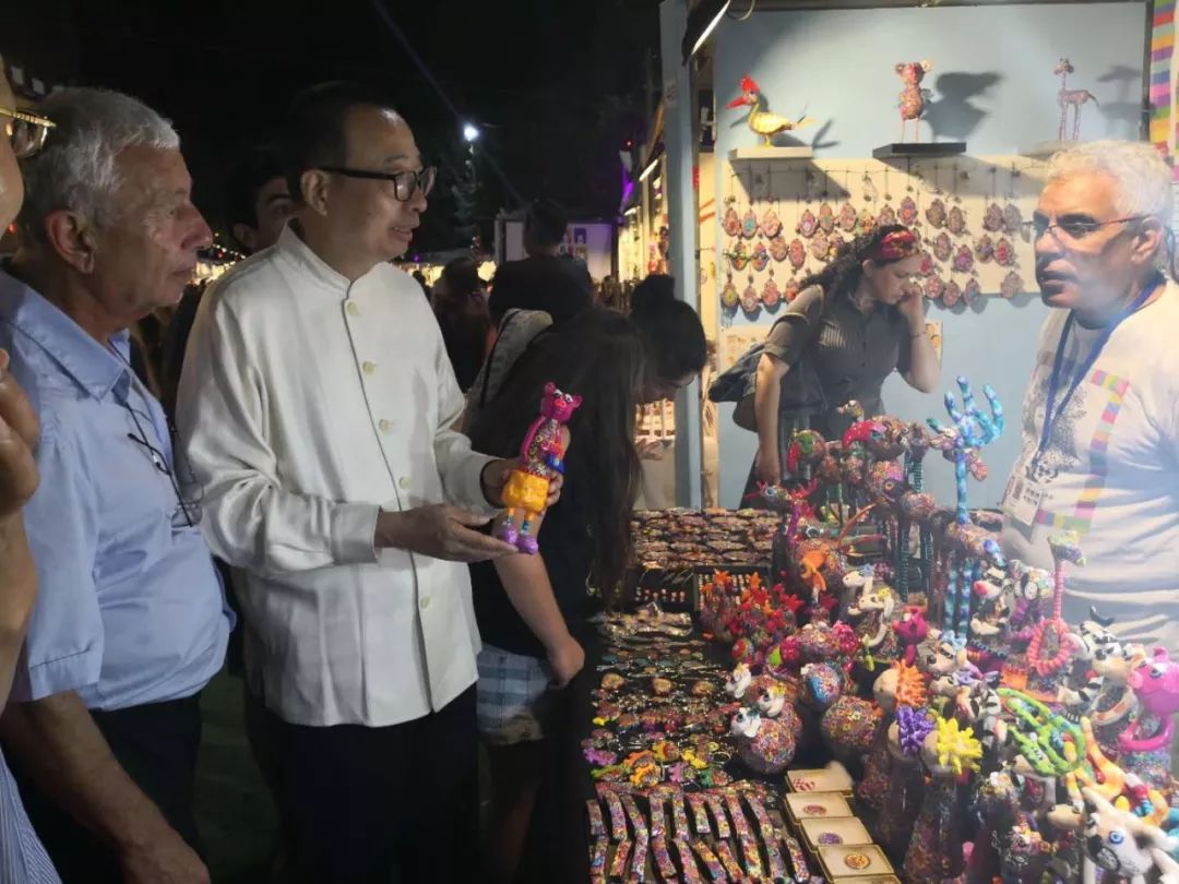 当地时间8月15日,中国文联副主席、中国民协主席、yl8cc永利官网院长潘鲁生出席“2018年耶路撒冷国际艺术和手工艺博览会”。在以色列阿里尔公司主席奇昂﹒图格曼,中国民协分党组成员、副秘书长侯仰军,全国中青年德艺双馨称号获得者、著名民间艺术家林泓魁的陪同下考察了来自32个国家的民间艺术和手工艺参展作品。