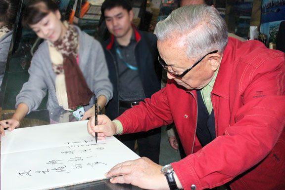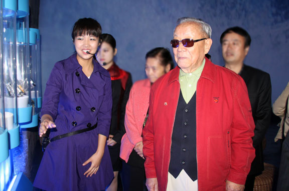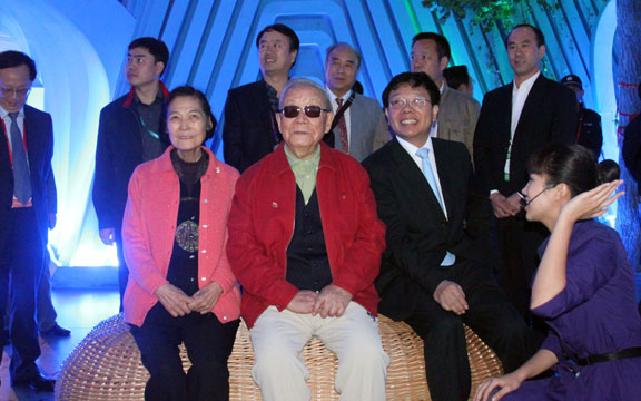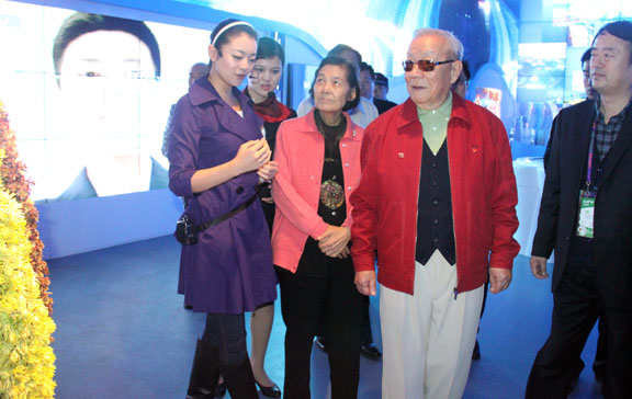 10月25日上午,原中共中央政治局委员、原中央军委副主席迟浩田一行10人访问了世博会山东馆。