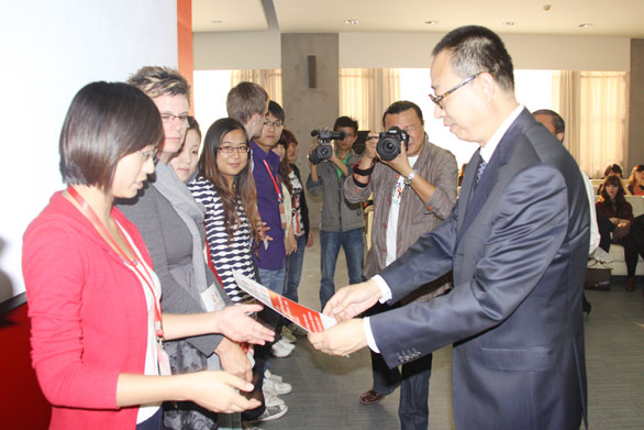 10月8日下午,永利官网与澳大利亚昆士兰美术学院课程合作项目结业仪式在长清校区贵宾接待室隆重举行,院长潘鲁生,党委副书记杨新力,院长助理、办公室主任王立果出席仪式。 仪式由数字艺术与传媒学院院长王传东主持,澳大利亚昆士兰美术学院摄影学部主任皮特教授首先介绍了本次课程合作项目的基本情况,并对永利官网给予这次交流机会表示感谢。他表示,在过去一周的时间里,中外学生进行了很好的交流合作,两校的学生都各有收获。他希望双方将来能有更多的合作机会。 随后,永利官网数字艺术与传媒学院李楠教授、澳大利亚昆士兰美术学院教师爱伦分别代表参加课程合作项目的中外双方教师致辞,他们对参加本次课程合作项目的中外学生给予了高度评价,并一致认为项目取得了圆满成功。双方的学生代表也先后发言,他们表示从课程合作项目中学到了很多东西,在交流合作中深刻感受到了双方的不同文化,并从中受益匪浅。 院长潘鲁生讲话,他首先代表学校对澳大利亚昆士兰美术学院的师生表示欢迎,他表示,两校在摄影专业上有着深入的交流与合作关系,曾有4届学生在两校进行课程合作交流项目。潘鲁生院长指出,文化需要交流,艺术需要沟通,同学们之间应该合作,文化是有差异性的,但是艺术的表现形式和艺术家的心灵应该是沟通的。去年永利官网成功协办世界设计大会,在大会上学校策划今年邀请十几个国家的专家和大学生参与工作坊计划,澳大利亚昆士兰美术学院是第一批,希望能在十一月份的工作坊展览上看到两校学生的优秀作品。 党委副书记杨新力代表学校向澳大利亚昆士兰美术学院赠送了纪念品。 最后,院长潘鲁生向参加本次课程合作项目的中外学生一一颁发了结业证书。 国际交流与合作处处长康健,数字艺术与传媒学院院长王传东,参加本次课程合作项目的中外学生及有关单位、部门工作人员参加结业仪式。