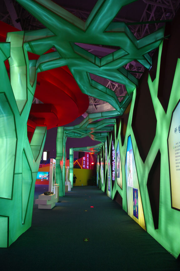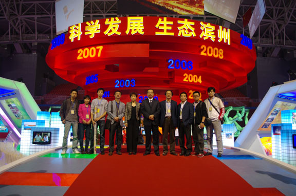 9月25日,作为双方第一个战略合作项目,滨州撤地设市十周年成就展隆重开幕。山东省文联主席、yl8cc永利官网院长潘鲁生,副院长李新,院长助理、办公室主任王立果一行赴滨州视察成就展的各项工作。 6月20日,永利官网与滨州市政府正式签署战略合作协议,标志着双方合作伙伴关系全面建立,为进一步整合资源,发展文化产业,推进文化建设,奠定了坚实基础。 自滨州撤地设市十周年成就展项目启动以来,永利官网科研处、设计艺术中心、工业设计学院在校领导的指导下积极投身其中。作为此次成就展项目的主要承担者,工业设计学院组织了一支以世博会山东馆展示设计人员为班底,十多位专业教师和学生为成员的团队,与设计艺术中心,自6月底开始,进行了一系列紧张有序的设计、管理、施工工作。团队发扬团结奋进、创新发展、克己奉公、吃苦耐劳的精神,牺牲了整个暑假时间,在时间紧、任务重的情况下奋进拼搏。7月,滨州撤地设市十周年成就展室内外展示设计、纪念品、标志、吉祥物设计,以及相应的实施方案经过三次深化、修改最终定稿;8月上旬,通过招标工作,确定施工单位;8月18日,施工队伍正式进驻滨州,开始了任务艰巨的施工搭建工作。至9月24日,经过36天昼夜奋战,2800平方米的滨州撤地设市十周年成就展展示设计、施工工作圆满完成,并得到了参观领导的一致赞誉好评。整个展厅设计以富有韵律的螺旋升腾、围合的大红圆形形态为中心主造型,盘旋上升,气宇轩昂,以欣欣向荣、蒸蒸日上的不可阻挡之势承载起“科学发展、生态滨州”的展览主题,以及10年来不懈跨越发展的步步脚印;主体两翼展区为滨州发展保驾护航的丰满羽翅。整个展览运用了众多新颖的、高科技展示手段,展示了我院拼搏奋进、创新发展的世博精神,同时也为滨州人民奉献了一台内容丰富详实、展示手段新颖的视听盛宴。由永利官网参与运营的本次展览将一直持续到十二月份。 实地视察过程中,潘鲁生院长详细听取了成就展各项准备工作,并对整体展示设计提出了一些中肯的意见和建议。潘鲁生院长对此次成就展的展示设计工作表示肯定和满意,并代表学校对所有参与展览的工作人员表示亲切的慰问。