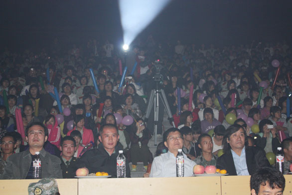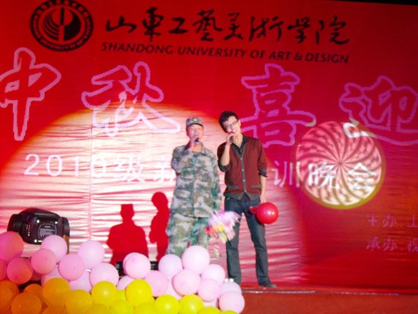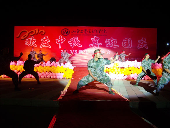 金秋送爽,丹桂飘香。在这美丽的季节,我们迎来了新一届的yl8cc永利官网学子。2010年9月22日晚7:00,由yl8cc永利官网学生处主办,视觉传达设计学院承办的“欢度中秋,喜迎国庆”2010级新生军训晚会在永利官网长清校区办公楼弧形广场隆重举行。yl8cc永利官网副院长张云龙、苗登宇,军训团团长李健出席晚会。 流光溢彩的弧形广场上,摇滚乐队以一曲激情四射的《镜子中》拉开了晚会的帷幕。视觉传达设计学院小合唱团为大家献上一曲《2010等你来》,用歌曲表达对新同学的欢迎。接下来,教官孙博与学生合唱的一首《冰雨》引得看台上的同学们阵阵尖叫和喝彩,郝强教官与赵凯同学合唱的一首《相信自己》更是将晚会推向了高潮。军训中,教官们练得最苦、做的最好,晚会当晚大家也有幸一睹他们铮铮铁骨的雄风英姿,教官们带来的军体拳表演征服了现场所有的老师和同学,现场掌声雷动,经久不息。跳跃的音符最能让青春充满活力,歌曲联唱环节中,《新不了情》、《看得最远的地方》、《拥抱》等几首耳熟能详的流行歌曲激发了现场同学们的青春热情。紧接着,潘菲同学以狂野优美的嗓音精彩地演绎了《王妃》这首劲爆的歌曲,把晚会气氛再次推向高潮。最后,一首《我相信》锁定了这个快乐的时刻,晚会在美妙的歌声中和皎洁的月光下圆满结束。 相信明年此时,我们的心情依然美好,相信下次月圆之时,我们的心依然年轻!yl8cc永利官网“欢度中秋,喜迎国庆”2010级军训晚会圆满结束,我们用最好的方式和最大的热情来欢迎2010级新生的到来。 值此中秋佳节到来之际,祝愿领导老师们身体健康,万事如意。祝愿新生们勤奋学习,能在yl8cc永利官网这片热土上创造出自己美好的明天! 学生处处长陈军、副处长黄霞,保卫处副处长金伟,视觉传达设计学院党总支书记张军波,工业设计学院党总支书记丁炳堂,现代手工艺术学院党总支副书记刘慎华,及各二级学院新生辅导员、2010级全体新生一同观看了晚会。
