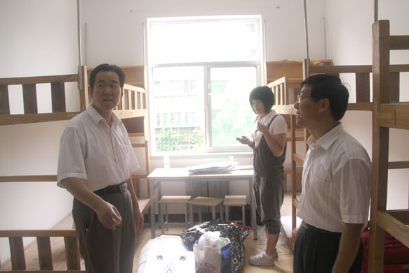 学校领导刁在祥、张云龙检查指导新学期学生公寓开学准备情况