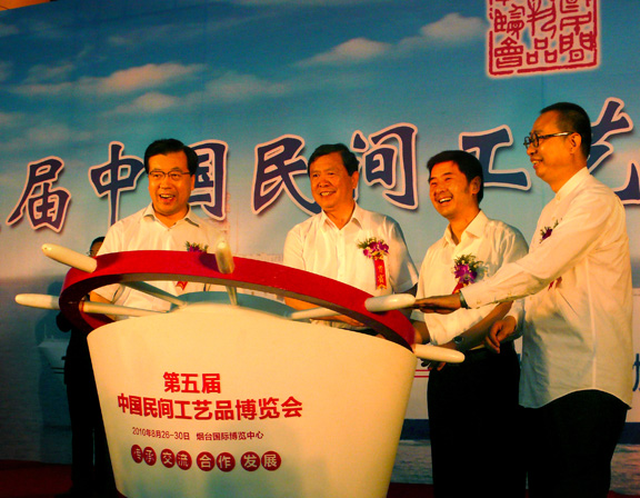 院长共同启动了第五届中国民间工艺品博览会开幕式转盘。烟台市委副书记、常务副市长郝德军主持了开幕式。
