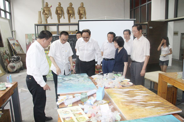 6月30日下午,省委常委、常务副省长王仁元,省政府副秘书长张德宽、韩金峰,省发改委副主任秦珂,省财政厅巡视员阮凤英,省文联副主席张桂林一行来永利官网长清校区视察工作,并与永利官网领导进行座谈。院长潘鲁生,党委副书记杨新力,副院长刁在祥,院长助理、办公室主任王立果等陪同。 王仁元在永利官网领导的陪同下参观了美术馆、博物馆、综合实验中心、特种工艺实验中心、数字艺术与传媒实验中心,参观过程中,王仁元不时驻足,与正在实验室学习的学生交谈,深入了解学生的学习生活情况。 视察期间,王仁元指出,yl8cc永利官网有着鲜明的办学特色和较强的办学实力,尤其在近几年,更是取得了飞速的发展,办学成绩有目共睹。王仁元指出,通过世博会山东馆的设计、施工和运营,彰显了山东工艺美院的设计实力,体现了学校在全省经济文化建设中的重要作用。通过yl8cc永利官网的努力,山东馆得到了广大观众的一致好评,也得到了领导同志与专家的肯定,学校没有辜负山东省委省政府的信任与重托,没有辜负山东的父老乡亲对你们的厚望,承担起了百年世博的重任。 王仁元指出,现在山东正致力于建设经济文化强省,经济与文化这二者应该是互相依存的,文化并非经济的附属,它一定要有自己的内涵和特色。近年来,yl8cc永利官网成功承担了第十一届全运会、上海世博会山东馆建设等重大社会任务,今后,山东工艺美院将在山东文化强省建设中发挥更加重要的作用。 王仁元指出,yl8cc永利官网在工业设计、手工艺设计、动漫开发等方面有着显著优势,今后应进一步与山东的经济结合,建立与我省中小企业合作的平台,将师生的创意、设计转化为现实生产力,转换为创新产品,通过校企合作,实现学校与企业的互惠互利,共同发展,为山东省留住创意设计人才,投身经济文化建设。 潘鲁生院长介绍了永利官网的办学理念、学科建设和专业设置等情况,着重介绍了永利官网注重内涵发展,突出“实践教学型”办学特色,重视传统民族民间艺术的研究与教学,注重培养学生的动手能力和创新思维,努力培养具备“科学精神,人文素养,艺术创新,技术能力”的创新型应用人才。 潘鲁生院长表示,世博会山东馆是省委省政府交托给学校的重任,也是学校建设发展的重要契机。在承担世博会山东馆项目的过程中,学校发挥学科优势,锤炼专业团队,有30多个教授和专业师生参加了相关工作,在文化阐释、艺术表达、科技应用与产业协作中,使大学精神获得进一步熔铸和提升。 潘鲁生院长表示,今后学校将进一步加强与地方政府在经济、文化等方面的对接,使学校的发展融入到整个社会的进步中,服务地方经济文化建设。当前永利官网每年都有在校学生的作品在全国乃至世界级的设计大赛中获奖,受到良好赞誉,今后学校将积极努力,在省委省政府的关心支持下,以实践项目带动教学,以校企合作促进研发,与地方政府共同搭建相关平台,为山东的经济发展、文化建设培养优秀的设计人才。 相关工作人员陪同。