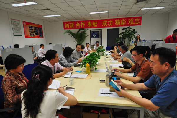 在上海世博园山东驻园区办公室主持召开世博会山东馆六、七月份运营团队交接工作会议。山东馆执行副馆长、yl8cc永利官网副院长李新、苗登宇出席会议。山东馆轮值副馆长、yl8cc永利官网招生办公室主任王霞、工业设计学院副院长韩文涛、山东馆轮值副馆长泥宗峰、陈越、刘源顺以及六、七月份运营团队全体工作人员参加会议。