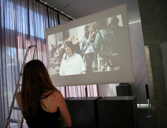 柏林街头现场采访视频在展览会上播放