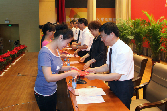 6月23日上午,永利官网2010届毕业生毕业典礼在长清校区学术报告厅隆重举行。党委书记于茂阳,院长潘鲁生,副院长李新、刁在祥、张云龙,院长助理、办公室主任王立果出席典礼并在主席台就坐。有关部门负责人、二级学院领导、部分教师代表和2010届毕业生参加典礼。典礼由副院长张云龙主持。 毕业典礼在雄壮的国歌声中开始。 院长助理、办公室主任王立果宣读了《yl8cc永利官网关于准予2010届本、专科毕业生毕业的决定》。刁在祥副院长宣读了《关于表彰2010届优秀毕业作品的决定》。李新副院长宣读了《关于表彰2010届优秀毕业生的决定》。随后,学校领导向毕业生代表、毕业设计作品获奖者颁发了毕业证书和荣誉证书,向校级优秀毕业生代表颁发了荣誉证书。 党委书记于茂阳向省级优秀毕业生颁发了荣誉证书。永利官网2010届毕业生不仅顺利圆满完成学业,还设计出优秀的设计作品,充分展现出永利官网“天工开物 匠心独运”的校训。毕业生们参与了学校建设发展的历程,积极践行设计服务生活的理念,努力实现人才培养与社会需求的对接。 教师代表孙磊代表全体教师发言。他祝贺毕业生圆满完成学业,并鼓励同学们在“人生这所没有毕业的学校”里勇于做一个拥有智慧并富有激情、胸怀大志并脚踏实地、德才兼备并勇于创新、负有责任并敢挑重担的人,在人生更加巨大的舞台上有所作为。 优秀毕业生代表张文秋代表全体毕业生发言,她首先代表全体毕业生对学校领导、教师、工作人员的关怀和教导表示衷心的感谢和敬意。张文秋表示毕业生们将牢记“天工开物 匠心独运”的校训,努力学习,勤奋工作,成为一名服务国家经济文化建设的合格设计师,让母校为毕业生将来的杰出表现骄傲。 潘鲁生院长代表学校党委和行政发表讲话。他首先代表学校党委、行政以及全体教职员工向即将毕业的同学们表示了最诚挚的祝贺,向辛勤耕耘的老师致以最衷心的感谢。 潘鲁生回顾了过去几年学校各方面建设取得的优异成绩,充分肯定了毕业生对学校作出的重大贡献。潘鲁生讲到,2010届毕业生们在全新的教学环境中养成健全人格,学习专业技艺,探索艺术规律,实现设计价值,亲身见证了学校教育教学理念的转变,见证了学校办学规模的扩大和社会影响力的提高。 潘鲁生饱含深情对毕业生们提出了三点希望。他希望同学们要脚踏实地,服务社会;他希望同学们勇于创新,追求卓越;他希望同学们热爱生活,担当责任。潘鲁生最后希望同学们秉承“天工开物 匠心独运”的校训,努力抓住宝贵的机遇,践行设计的良知和使命,实现艺术的意义和价值,服务人民,引领生活,为正在蓬勃发展的国家文化创意产业做出自己应有的贡献,成为设计界的精英和栋梁。 最后,2010届全体毕业生宣誓,毕业典礼在悠扬的校歌声中结束。典礼结束后,学校领导与全体毕业生于美术馆前合影留念。
