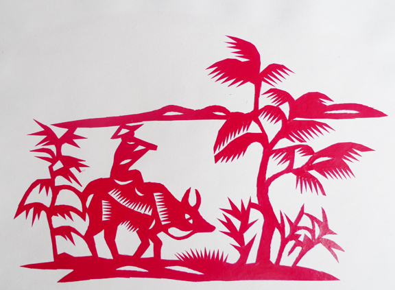 鲍家虎:过去剪纸都是自己剪自己用,它不是作为商品,到节日自己贴自己娱乐的这种,有剩余的到街市上买。但作为大众商品,也就是毓璜顶做到了,其他的我看还是没有做到。偶尔过去可能工艺美术研究所有搞兼职的,可能有少量出口,但不成气候。现在有些地方剪纸有做得好的,比如河北蔚县的点彩剪纸作为旅游产品在全国各地畅销,影响很大。所以剪纸不要看它很薄的一张纸,但是只要做大了,一样也能养一方人。