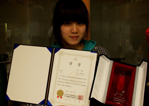 5月6日至5月9日,在韩国美甲艺术交流协会举办的“国际美甲交流大赛”中,应用设计学院赴韩交流学生参赛并获得优异成绩: 07级化妆班刘婷同学荣获金奖; 07级化妆班彭杏娟同学获得银奖; 08级化妆班王常伟同学、李羽憧同学获铜奖。 本次大赛是社会时尚界人士以及高校化妆专业学生参与的专业美甲交流活动,分为社会部和学生部两大版块,各自设置金奖一名、银奖一名、铜奖三名、优胜奖6名。
