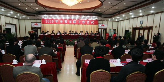 省委宣传部副部长刘宝莅在讲话中充分肯定了全省文联系统过去一年的工作,并针对新形势提出了新要求。强调要服务大局,把握正确导向;精心策划,组织创作文艺精品;面向基层,服务人民群众;采取有力措施,加强文艺人才队伍建设;加强学习型组织建设,努力提高文联工作的科学化水平。省文联党组书记、副主席于钦彦在工作报告中实事求是地总结了2009年的工作,客观地分析了文联目前面临的新的形势,具体地部署了2010年的工作任务,提出了做好今后工作的措施。省文联主席 潘鲁生在讲话中强调艺术家要担当使命,繁荣文艺;指出文艺工作和文联工作面临着大好形势,担负着重要使命,具体要从战略高度推进文化发展,从创作方面打造文化品牌,从服务的角度完善文联工作,从普惠民生的意义上繁荣文艺创作。