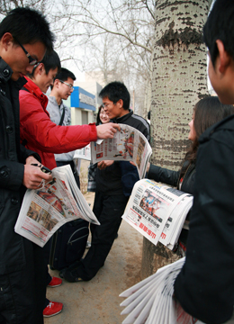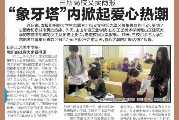 河水断流、水井干涸、农田龟裂,严重的干旱给部分省市人民的生产生活带来极大不便,甚至威胁着人们的生命……一张张触目惊心的照片、一则则令人揪心的新闻报道,牵动着全国人民的心。 为帮助旱受灾群众尽快渡过艰难时刻,由党委宣传部牵头,永利官网千佛山校区广播台同学积极联系山东商报,主动要求参加该报组织的全省高校大学生“义卖报纸 支援灾区”爱心捐助活动。3月31日上午,永利官网千佛山校区广播台全体同学与山东商报携手,开展了援助西南旱灾地区报纸义卖活动,并将捐款、义卖所得,通过山东商报发往灾区。 早上8点钟,正是文化东路来往人群最多的时候,来自永利官网长清校区广播台的18名同学们手捧义卖报纸穿梭在人群之中。在两个多小时的时间里,我们义卖出100份报纸,筹得善款近400元。虽然广播台人员不多,所捐善款数量也很有限,但这代表了我们对灾区人民的牵挂之心。