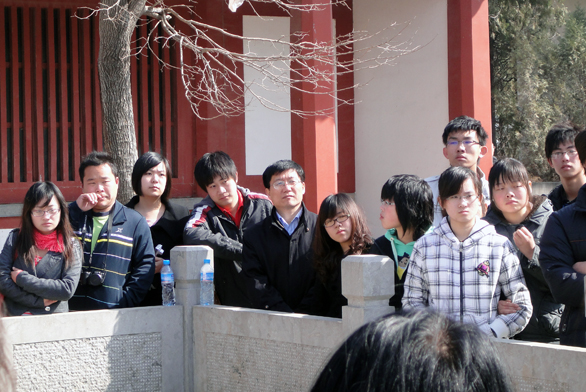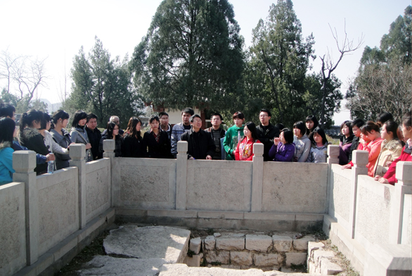 3月26日上午,yl8cc永利官网副院长张云龙到人文艺术学院教学实习基地——长清区孝堂山文管所现场听取了人文艺术学院院长张从军教授主讲的《中国文化史》课程。 孝堂山郭氏墓石祠位于长清区孝里镇孝堂山(原名巫山)顶,是东汉章帝、和帝时期的墓地祠堂,是中国现存最早的地面房屋式建筑。石祠内的汉画像石再现了两千年前山东地区的社会风貌和达官显贵的生活状况,具有极高的历史、考古和文物价值。张从军教授结合实习基地遗迹对《中国文化史》课程中的秦汉文化进行了深入浅出的现场讲解,这种教学方式激发了同学们浓厚的学习兴趣。造型艺术学院07书法班的学生也同时听取了现场讲解。 本次现场教学是《中国文化史》课程的必修环节,对于深化同学们对中国秦汉时期的社会文化、宗教礼俗和学术思想的理解具有重要的意义,同时也能够帮助同学们汲取中国传统文化的有益成分,陶冶情操,丰富思想,从而对其他相关课程的学习产生潜移默化的影响。 张云龙副院长听取了整个教学过程,他对现场教学这种灵活的教学方式给予充分肯定,同时也就相关的学术问题与张从军教授进行了交流。