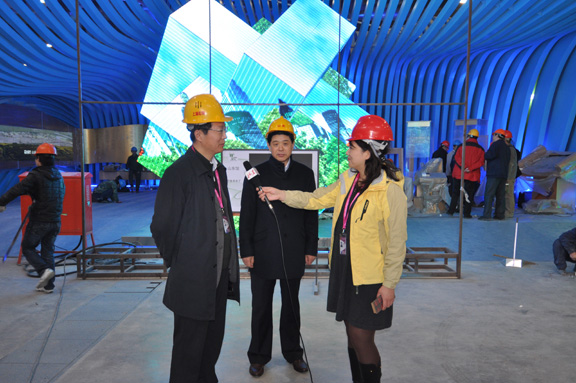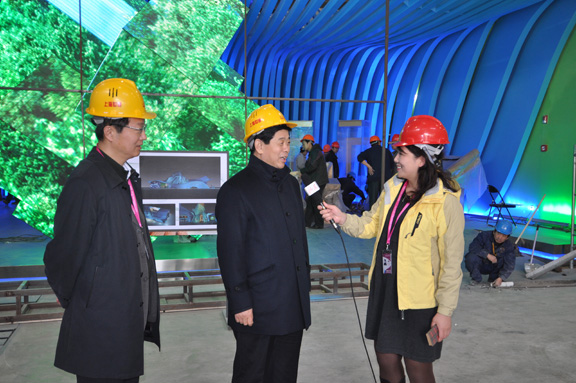 院长向韩金峰副秘书长、费云良主任、曲东涛副主任,详细介绍了山东馆的具体搭建成果。韩金峰副秘书长一行自主入口开始,仔细浏览了山东馆的序厅、主展厅“和而不同,我们的家园”电影、尾厅等各部分,对山东馆施工搭建表示满意。