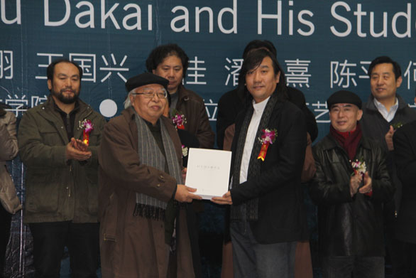 杜大恺教授将自己精心创作的作品《追梦惠州》和精美的画册捐赠给永利官网,院长潘鲁生和副院长苗登宇先后代表学校接受了捐赠,潘鲁生院长向杜大恺先生颁发了捐赠证书。