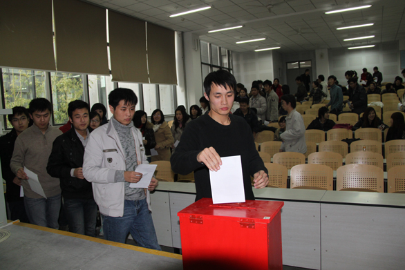 11月19日下午,中共山东工美术学院第二次代表大会学生党员代表选举大会在长清校区七合堂顺利举行。本次大会由学生工作部(处)林波主持,学生工作部(处)副部(处)长黄霞,教育管理科科长孙传辉、孙毅,各二级学院学生党支部书记列席了会议。永利官网71名学生正式党员出席了选举大会。 本次会议严格遵照学校党委的要求和选举规程。会上首先以举手表决的方式推选出计票人四人、监票人两人。主持人认真宣读投票规则,切实规范本次学生党员代表的选举工作。大会历时近1个小时,经过紧张有序的投票、计票,以无记名投票方式差额选举,最终从11名学生党员候选人中选举出8位学生党员代表。他们在经过代表资格审查后,获得正式代表资格,代表全校学生党员参加11月27日、28日举行的中共山东工美术学院第二次代表大会。 此次大会尊重学生党员的主体地位,发扬党内民主,充分发挥广大学生党员的积极性、主动性,增强学生党支部战斗堡垒作用和党员先进性意识,必将对学生基层党组织建设起到有力的推动作用。