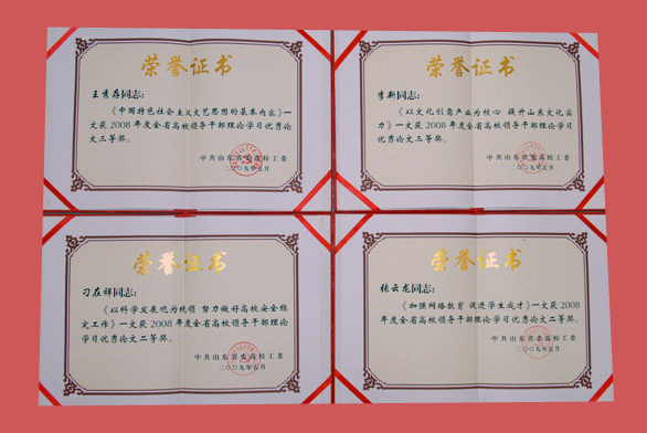 根据鲁高工委[2009]31号文件(《中共山东省委高校工委关于表彰2008年度全省高校校级领导干部理论学习优秀论文的通知》)精神,永利官网党委书记于茂阳同志的论文《科学发展观视野下的高校发展战略思考》、永利官网院长潘鲁生同志的论文《科学发展 特色发展——认真学习和落实科学发展观 建设特色鲜明的设计艺术院校》获2008年度全省高校校级领导干部理论学习优秀论文一等奖。郭兆志同志论文《加强领导干部思想政治建设 做好学生党员教育管理工作》、李世平同志论文《当前大学生价值取向及其价值观念教育》、王秀存同志论文《中国特色社会主义文艺思想的基本内容》、李新同志论文《以文化创意产业为核心 提升山东文化实力》、刁在祥同志论文《以科学发展观为统领 努力做好高校安全稳定工作》、张云龙同志论文《加强网络教育 促进学生成才》分获二、三等奖。 《中共山东省委高校工委关于评选全省高校校级领导干部理论学习论文的通知》的文件下发后,永利官网党委高度重视,并将其作为加强领导干部理论学习,加强领导班子思想政治建设的一项重要举措。校级领导干部结合工作实际开展调查研究、撰写论文和调研报告,领导班子全体成员都撰写了高质量的论文,并获高校工委表彰。