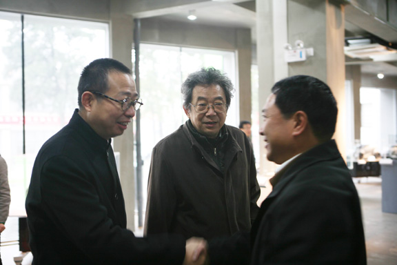 院长与南京艺术学院原院长冯健亲(中)、现任党委书记米如群(右)交谈