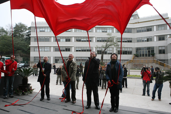 张福昌、柳冠中、王明旨、吴静芳(自左向右)四位工业设计界的前辈为工业设计学院揭牌