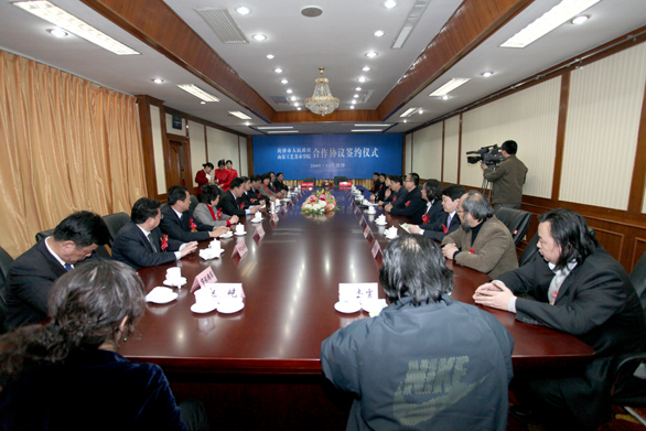 11月13日下午,永利官网与菏泽市政府签署合作协议仪式在菏泽市牡丹大酒店举行。永利官网党委书记于茂阳,山东省文联主席、院长潘鲁生,副院长李新、苗登宇,院长助理、办公室主任王立果出席仪式。菏泽市出席仪式的领导有市委书记、市人大常委会主任赵润田,市委副书记、市长刘士合,市委副书记王浩,市委常委、宣传部长孙丰华,市政府副市长黄秀玲,市委宣传部副部长、市文明办主任杨晓军。签署仪式由菏泽市市委副书记王浩主持。 菏泽市市市委副书记、市长刘士合致辞。他对永利官网领导的到来表示欢迎,对双方达成全面合作协议表示热烈祝贺。刘士合简要介绍了菏泽市地区发展的优势和特色以及近年来菏泽市经济和社会发展总体情况。 刘士合指出,菏泽市人民政府与yl8cc永利官网签署合作协议,加强互惠合作,推动共荣发展,意义非常重大。yl8cc永利官网作为全国31所独立建制的高等艺术院校中唯一一所工艺美术学院,办学理念先进,师资力量雄厚,在国内外具有较高的知名度,尤其是深入开展文化产业创意研究,推动产学研结合,为促进社会和谐发展做出了积极贡献。近年来,yl8cc永利官网在省文博会菏泽展台设计、文化品牌展示、文化产业规划制定等方面给予了菏泽大力支持,双方合作的时机已经成熟。 刘士合希望,双方以签署合作协议为新的开端,依托各自资源优势,积极搭建平台,深化合作领域,拓展合作空间,完善产学研合作机制,广泛开展多领域合作,推动文化旅游产业和经济社会和谐发展,实现互利双赢,共创美好明天。 永利官网党委书记于茂阳致辞。于茂阳指出,与菏泽市政府合作签约仪式隆重举行,标志着双方合作伙伴关系的全面确立,为进一步整合资源,发展文化产业,推进文化建设奠定了坚实基础。 于茂阳表示,长期以来,菏泽市与永利官网在民俗艺术研究、非物质文化遗产抢救与保护、农村文化产业调研等方面建立了良好的合作关系,结成了深厚友谊。此次合作协议的签订,是对以往合作关系的巩固与深化,更是对未来合作前景的展望与开拓。 于茂阳指出,永利官网是目前全国唯一一所独立建制的工艺美术学院,是拥有硕士学位授予权的专业艺术院校。学校以“设计艺术”学科为主体,设有视觉传达设计学院、现代手工艺术学院、工业设计学院、服装学院、数字艺术与传媒学院、人文艺术学院等十一个教学单位,建有中国民艺研究所、建筑与景观设计研究院的专业研究机构,学校积极培养艺术设计人才,16个本科专业、51个专业方向与文化创意产业全面对接。在建设与发展中,形成了优秀的科研与创作团队,在全国美展等专业赛事中,获得重要奖项;在社会服务方面,也取得了一系列积极成果。近来,学校完成了第十一届全运会会徽、吉祥物、圣火台、奖牌、志愿者标识等视觉形象设计,承担了2010年上海世博会山东馆的设计任务,参与举办了第七届中国体育美术作品展、齐鲁国际摄影周等文化活动。学校在发挥专业优势,服务经济文化建设方面,积累了一定的经验。 于茂阳强调,此次与菏泽市签订合作协议,对于学校进一步拓展实践教学空间,加强人才培养,提升科研与创作实力,服务地方经济文化建设,具有重要意义。菏泽是中华文明的重要发祥地之一,物华天宝,人杰地灵,历史文化悠久,艺术资源丰富,近年来发挥资源优势,打造文化品牌,发展文化产业,建设文化大市,取得了令人瞩目的成绩。相信双方的合作,有助于促进文化艺术资源研究与开发,推进设计项目合作,促进设计产业发展和设计人才培养,有助于实现教育、文化、经济的和谐互补、繁荣发展。相信双方的合作,对于服务我省“经济文化强省”战略,将发挥积极的作用。 院长潘鲁生、菏泽市市委副书记、市长刘士合分别代表永利官网与菏泽市政府签署了合作协议。 此次与菏泽市政府签署合作协议,是继永利官网与莱芜市政府、淄博市政府签署合作协议以来,又一次与政府部门的深入合作。永利官网将与菏泽市政府在城市经济与文化建设、教学科研、设计项目、设计人才培训、文化创意产业策划及咨询等相关领域展开全面的合作。此次与菏泽签署合作协议也是永利官网加强与地方合作交流的重大举措,是永利官网服务区域经济发展的办学理念的重要体现。 永利官网党委宣传部部长张振羽,教务处处长董占军,科研处处长胡希佳,研究生处处长唐家路,现代手工艺术学院院长段建华,人文艺术学院院长张从军,中国民艺研究所所长、人文艺术学院副院长赵屹,建筑与景观设计研究院院长郭去尘以及菏泽市市政局、广电局、建设局、旅游局等单位负责同志参加合作协议签署仪式。