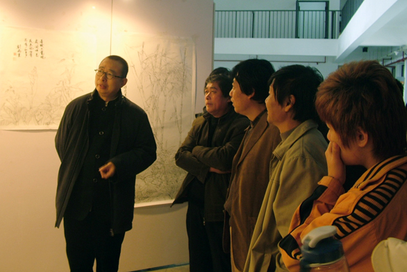11月10日中午,潘鲁生院长莅临造型艺术学院学生写生作品展现场并对学生写生作品进行了指导。 潘鲁生院长在参观展览时,认真听取了造型艺术学院院长雷家民对此次外出写生课的介绍,对同学们的作品给予了充分肯定,并提出了建议。在参观2008级油画班的写生作品展时,潘鲁生院长指出,作为造型基础专业的学生,外出写生是十分必要和关键的;学生应多看展览,多学习,多锻炼,多领悟,并进一步加强对色彩的理解,逐步完善自身专业基础,打好功底,力求突破。在参观2007级花鸟山水班的写生作品展时,潘鲁生院长指出,写生首要的是观察,观察一定要细致,要善于发现,这样既能锻炼自己的观察能力,又能为以后的毕业创作打下良好的基础。对于植物花卉的写生,要在司空见惯中逐步加强对其形态的描绘,提高学生自身观察素材的能力,把握好法度、结构、规律等。还要在学习传统的基础上创新。潘鲁生院长希望同学们在艺术创作中要从线条、色彩、体面关系、构图适宜度等方面加深理解和处理,逐步加深对规律性的认识,在学习传统的基础上,着力突出自身特色。潘鲁生院长认为,中国花鸟画多注重意境和诗意的结合。在题字方面,最好是用小楷,不仅能起到画龙点睛的作用,还能加深观画者对作品的深入了解。在作画时,要保持心灵的平静,把握好画的韵味和节奏。处理好人与物的关系,让观画者身临其境,达到情景交融,气韵连贯。 加强基础教学,充分利用写生课,以写生创作带动教学是造型艺术学院积极贯彻学校实践教学体系的良好体现。在观看展览的过程中,潘鲁生充分肯定了学生写生创作所取得的成绩,并对学生的专业学习提出了殷切的希望和具体的建议,使广大学生对于专业学习有了更深层次地理解,对于开拓广大学生的视野,增强学习积极性,提高专业技能具有重要的指导意义。 教务处处长董占军,后勤管理处副处长毕剑翎,工业设计学院院长彭冬梅,造型艺术学院院长雷家民、党总支书记李龙潭,数字艺术与传媒学院院长王传东、党总支副书记黄美玉等陪同参观了展览。