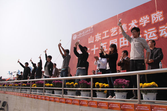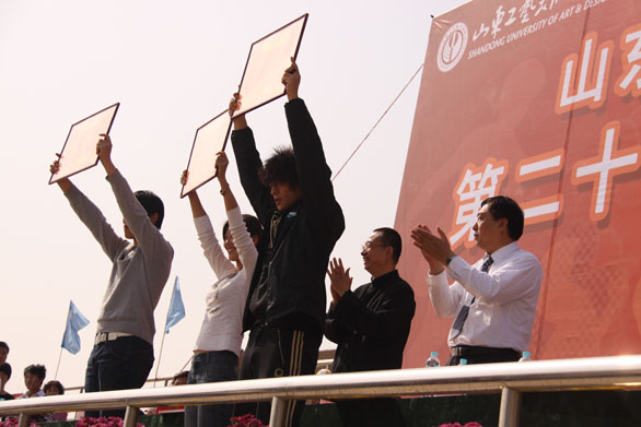 总裁判长王冬立宣读比赛成绩,在第二十五届田径运动会中,永利官网教职员工和学生积极参与,奋力拼搏,取得了良好的成绩。视觉传达设计学院2008级、建筑与景观设计学院2009级、建筑与景观设计学院2008级分别获得年纪总分前三名,视觉传达设计学院、建筑与景观设计学院、服装学院分别获得学院总分前三名。
