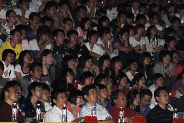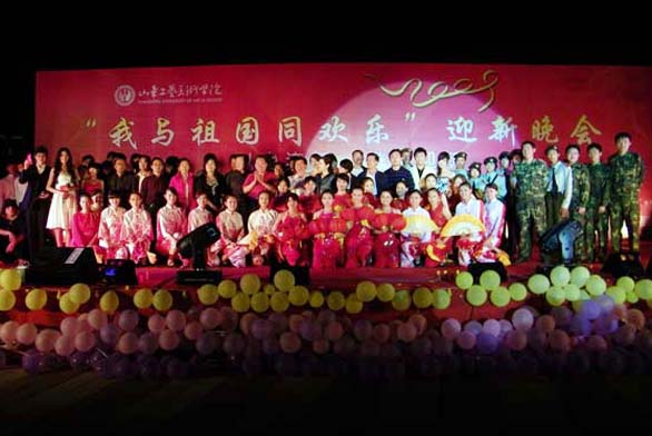 带着憧憬,怀揣梦想,我们迎来了2009级新同学;满载希望,面向彩虹,我们即将迎来新的挑战。为帮助大一新同学尽快适应大学生活,在全国上下共庆祖国60华诞之际,永利官网“2009'我与祖国同欢乐”迎新晚会于2009年9月25日晚成功举办。 9月25日晚7时许,由永利官网学生处主办、工业设计学院承办的 “2009'我与祖国同欢乐”迎新晚会在永利官网长清校区弧形广场隆重举行。党委书记于茂阳,副院长王秀存、张云龙从百忙之中来到了晚会现场,与同学们一起观看了演出。出席本场晚会的嘉宾还有:机关党总支、学生处、保卫处、宣传部等机关部门的负责人以及各院院长、书记和老师们。 晚会以循环乐队演奏的一首动感十足的《young fou you 》拉开帷幕,超动感的歌曲展现了同学们朝气蓬勃、昂扬向上的精神风貌。随着主持人的上场,晚会现场上空成了花的海洋,六十颗礼花璀璨夺目、争艳夜空,在庆祝祖国60年华诞的同时,也为晚会现场增色不少。诗歌朗诵《青春中国》激昂澎湃,讲述了中华人民共和国建国60年走过的艰难历程,中国犹如东方的一条巨龙正在腾飞,用自强不息的精神诠释着青春的意义。小品《山寨版鹿鼎记》凭着演员们精彩的反串表演,博得现场观众热烈掌声。接下来《红旗飘飘》的演唱者是平日里认真严肃的辅导员老师们,铿锵的旋律让在场观众热血沸腾,同学们深切感受到青春中国的活力,将本场晚会的气氛推向了高潮。最后,晚会在舞蹈《好日子》的深情演绎中圆满落下帷幕。 本次晚会包含了舞蹈、小品、话剧和歌曲等各类节目。悠扬婉转的旋律、激情奔放的舞蹈以及幽默风趣的话剧和小品,充分展示出永利官网学生的多才多艺,同时也反映出了永利官网和谐的校园文化氛围。让我们共同祝愿母校的明天更加美好,祝愿我们的祖国更加繁荣富强!
