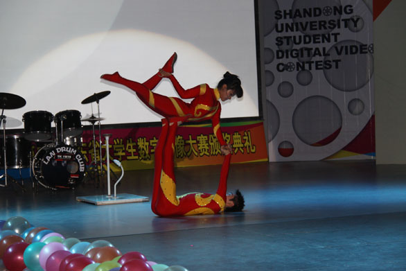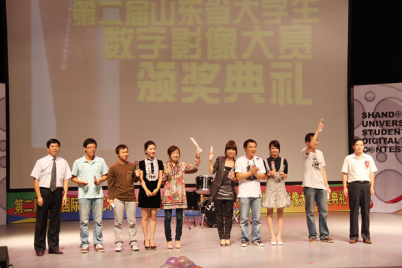 9月25日下午,作为山东省委宣传部、山东省文学艺术界联合会共同举办的“第二届山东国际大众艺术节”系列活动之一,山东省文学艺术界联合会、山东省电影家协会主办,yl8cc永利官网承办的“我的影像 我的青春——山东联通杯·第二届山东省大学生数字影像大赛”颁奖典礼在yl8cc永利官网长清校区数字演播大厅举办。 出席颁奖典礼的嘉宾有:著名影视表演艺术家李保田、导演冯小宁、影视演员刘晓薇、影视演员黄渤,省文联主席、yl8cc永利官网院长潘鲁生,省文联党组成员、副主席姬德君,省文联副主席、《新聊斋》杂志社社长杨枫,山东省电影家协会副主席、山东电影制片厂厂长王坪,山东省电影家协会副主席于海丰,省文联副巡视员、省书法家协会常务副主席顾亚龙,山东大学文学与新闻传播学院教授、博士生导师唐锡光,山东省影视剧制作中心一级导演王大安,省影视剧制作中心主任王汉平等。 yl8cc永利官网党委书记于茂阳,党委副书记、纪委书记李世平,副院长王秀存、李新、刁在祥、张云龙,院长助理苗登宇,院长助理、办公室主任王立果出席了颁奖典礼。 演艺界嘉宾李保田、冯小宁、黄渤、刘晓薇,省文联主席、yl8cc永利官网院长潘鲁生,省文联党组成员、副主席姬德君,省文联副主席、《新聊斋》杂志社社长杨枫,以及yl8cc永利官网于茂阳、李世平、王秀存等校领导分别为一、二、三等奖获奖作者颁奖。 yl8cc永利官网数字艺术与传媒学院选送的《非物质——历史留下的记忆》、《自画像》、《梦》、《向阳花》分别获得纪录片、动画片、手机片、MV四项一等奖,纪录片《环境保护》、动画片《面包》、故事片《17岁的电影梦想》获二等奖,故事片《星星草》获得三等奖。 yl8cc永利官网数字艺术与传媒学院还荣获优秀组织奖,吴向阳、宋鲁、叶子、张常霞、杨濡豪、郑琳、闫景冬、邢艳群等教师荣获优秀指导教师奖。 颁奖典礼上,来自yl8cc永利官网、山东艺术学院的学生和山东歌舞剧院、济南市杂技团的演员表演了富有活力的舞蹈、乐器、杂技等精彩节目,现场气氛热烈。 山东省大学生数字影像大赛是省内数字影像事业的权威赛事,大赛共评出38个作品奖,以及优秀导演奖、优秀摄影奖、优秀指导教师奖、网络人气奖等单项奖23个。本次大赛自3月份启动以来,共收到各高校送来的作品近2000件,涵盖山东大学、山东师范大学、山东艺术学院、yl8cc永利官网、济南大学、山东建筑大学、山东交通学院、山东传媒职业学院、山东教育学院、山东省工会管理干部学院、聊城大学、临沂师范学院、青岛农业大学、青岛大学、曲阜师范大学15个高校的31个院系。