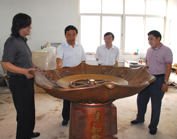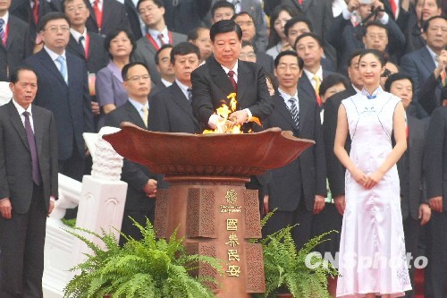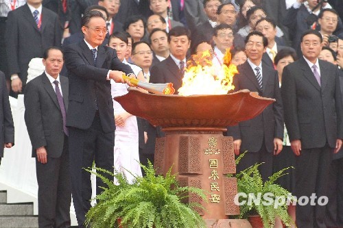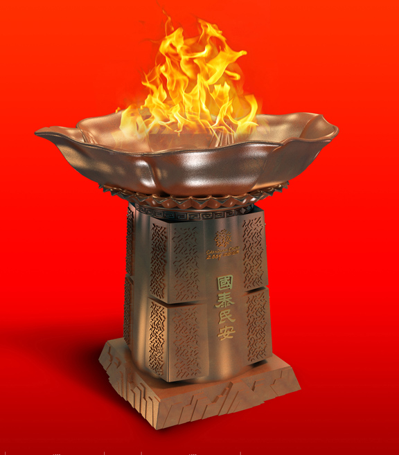 2009年8月16日上午9时整,以“祝福祖国,共享全运”为主题的中华人民共和国第十一届全国运动会火炬传递活动点火起跑仪式在北京人民大会堂东门外广场举行。出席本次点火仪式的国家领导人有:中共中央政治局常委、全国人大常委会委员长吴邦国,中共中央政治局委员、国务委员刘延东,中共中央政治局委员、中共北京市委书记刘淇等。此次点火仪式由国务委员兼国务院秘书长马凯主持。 山东省委书记姜异康将“国泰民安,和谐昌盛”圣火坛点燃。中共中央政治局常委、全国人大常委会委员长吴邦国将主火炬点燃并传递给国家体育总局局长刘鹏,随后,刘鹏将主火炬传递给主火炬手杜丽,杜丽依次点燃了4路火炬手手中的火炬。由此,中华人民共和国第十一届全国运动会火炬传递活动正式开始。 此次全运会火炬传递点火仪式所使用的“国泰民安,和谐昌盛”圣火坛方案,是由yl8cc永利官网研究生处处长唐家路教授主创,学校教师张培源、宋处岭、孙勇及硕士研究生单大鹏、王拓共同参与设计完成。圣火坛设计追求安全实用,庄重大气,既包含传统寓意和文化内涵,特别是齐鲁文化特色,又不失简洁和时代气息。实物制作由科研处处长胡希佳教授及其助手和设计人员在枣庄圣德青铜艺术有限公司完成。圣火坛燃火技术由中山华帝燃具股份有限公司设计实施。 圣火坛从设计到制作完成历时一个多月,自2009年6月中旬,永利官网设计团队与其他设计单位同时开始圣火坛的设计创作,设计过程中曾先后提交多套方案,并多次向省政府有关领导和组委会汇报、修改,并不断完善。最后,其中的方案之一“国泰民安、和谐昌盛”圣火坛被确定为中华人民共和国第十一届全运会火炬传递点火仪式点火坛。 圣火坛的设计与制作时间紧迫,要求严格。国家体育总局,省政府有关领导和十一运组委会领导高度重视,特别是点火安全问题,省政府副秘书长、十一运会组委会常务副秘书长司安民,以及全运会组委会群体部的有关领导等多次听取汇报,为圣火坛的设计提出指导性意见,方案确定后又多次亲临现场检查圣火坛的制作及点火技术安全问题。yl8cc永利官网院长潘鲁生教授、院长助理苗登宇教授等也多次指导圣火坛的设计并提出了重要的指导意见,同时也为设计与制作工作组织协调,确保了设计与制作任务的顺利完成。