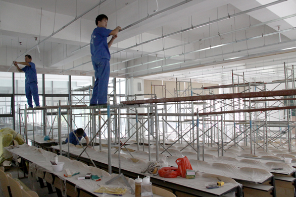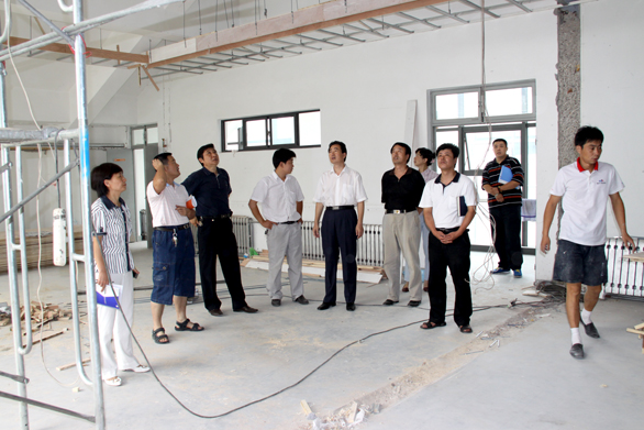 为进一步落实学校学习实践科学发展观活动整改方案,落实院长办公会决议责任工作,保证暑期相关项目按时完成,8月5日上午,副院长刁在祥,院长助理、办公室主任王立果亲临长清校区施工现场检查指导工作,代表于茂阳书记、潘鲁生院长对施工现场工作人员进行慰问,并对工作提出具体要求,倡导暑期加班人员以实际行动落实中组部下发的《关于开展向吴大观同志学习活动的通知》和学校党委下发的《关于认真开展向吴大观同志学习活动的通知》文件精神。 副院长刁在祥,院长助理、办公室主任王立果视察了合堂教室、会议室改造施工现场,并对施工细节提出了要求。 视察结束后,副院长刁在祥,院长助理、办公室主任王立果组织相关部门同志在行政会议室召开了工作会议。院长助理、办公室主任王立果主持会议。 会议先后听取了后勤管理处副处长毕建翎、资产管理处处长郭春荣以及相关具体项目负责同志关于工作进展情况以及下一阶段工作计划的汇报,并对施工过程中存在的困难和亟待解决的问题进行了研究。 副院长刁在祥讲话。他代表于茂阳书记、潘鲁生院长对暑期坚持工作的相关部门人员表示感谢和慰问,指出,学校相关部门人员认真落实党委学习实践科学发展观整改方案、院长办公会决议要求,利用暑期开展工作,取得了显著成效,为学校科学发展做出了贡献。刁在祥要求,有关人员以实际行动落实中组部下发的《关于开展向吴大观同志学习活动的通知》和学校党委下发的《关于认真开展向吴大观同志学习活动的通知》文件精神,继续发扬良好的传统和精神做好接下来的各项工作任务。副院长刁在祥对下一阶段的工作提出了具体要求:一、进一步提高思想认识;二、进一步明确工作目标;三、进一步改善工作方法;四、进一步加强沟通、协调和配合;五、进一步振奋精神,加倍努力工作;六、进一步提高工作效率。 院长助理、办公室主任王立果作总结讲话,指出,学校相关部门人员牺牲假期休息时间,严格按照党委学习实践科学发展观整改方案、院长办公会决议要求,在时间紧、任务重、困难多的情况下,敬业工作,前期工作成效显著。王立果强调,后期工作任务艰巨,相关部门同志要继续发挥能战斗、打硬仗、快速工作的精神和作风,保质保量的完成各项工作任务。 后勤管理处副处长毕建翎,后勤党总支副书记杨尚志,后勤管理处副处长丁鲁,资产管理处处长郭春荣及后勤管理处、资产管理处有关人员参加会议。