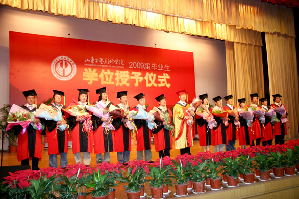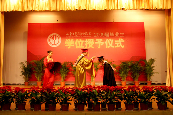 6月26日下午,永利官网2009届毕业生学士学位授予仪式在长清校区学术报告厅隆重举行。校学位评定委员会主席、院长潘鲁生博士,学位评定委员会副主席、副院长李新博士、张云龙博士,学位评定委员会秘书长教务处处长董占军博士,学位评定委员会委员、科研处处长胡希佳教授,研究生处处长唐家路博士,视觉传达设计学院院长石增泉教授,建筑与景观设计学院院长丁宁教授,工业设计学院院长彭冬梅教授,服装学院院长罗云平教授,造型艺术学院院长雷家民教授,现代手工艺学院院长段建华教授,人文艺术学院院长张从军教授,应用设计学院院长任仲泉教授,继续教育学院院长吕学海教授,公共课教学部主任徐思民教授出席学位授予仪式。仪式由院长助理苗登宇教授主持。 在庄严的国歌后,副院长李新博士宣读了《yl8cc永利官网关于授予2009届本科毕业生学士学位的决定》。 学位委员会主席、院长潘鲁生依次为获得学士学位的毕业生颁发了学位证书。 据悉,永利官网1753名学生符合国家及学校学士学位条件,被授予学士学位。