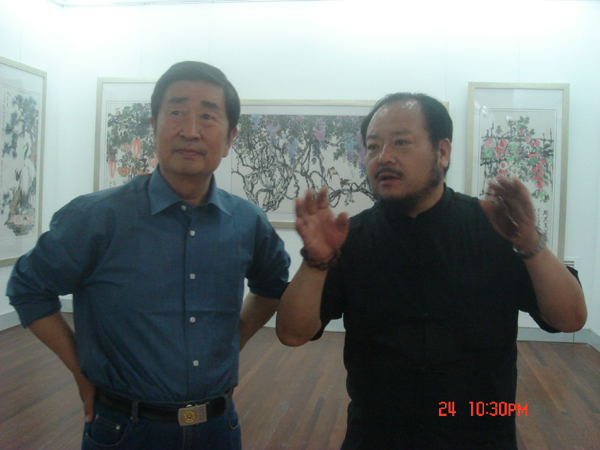 山东省政协原主席韩喜凯、山东工艺美院党委书记于茂阳、院长潘鲁生参观吴永福教授画展