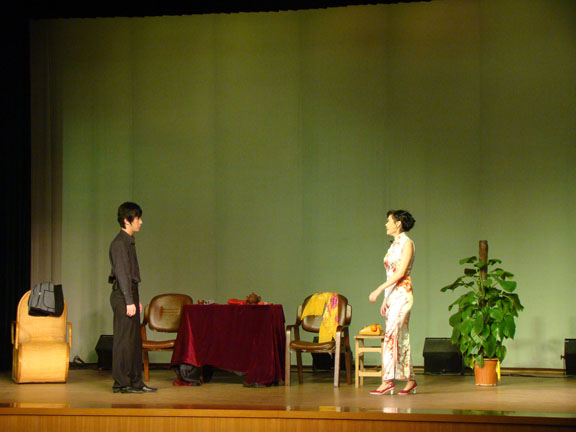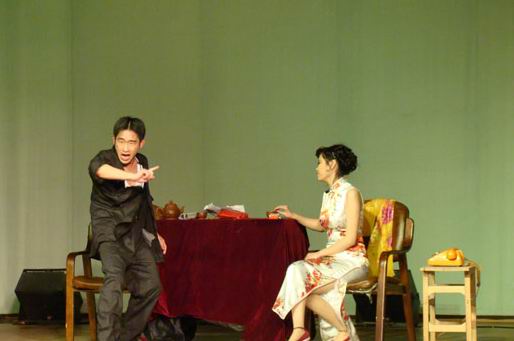 《倾城之恋》打响了“话剧之夜”的头炮,这场“因为整个城市的倾覆而获得的”的姻缘,在同学们的演绎下显得颇有滋味。流苏、柳原在苦难中相知、相携,更相爱,经历过战争的洗礼,他们的爱情就像这个城市一样,永不摧毁!灯光迷离、人影婆娑,观众席不时爆发出阵阵掌声。《日出》给了人们更大的惊喜,尤其是纪艺同学扮演的陈白露形神兼备,引起了观众们的啧啧称赞。旗袍和旧音乐已经成为上海让人印象最深刻的传统记忆符号,同学们便很好的抓住了这一点,将灯红酒绿、燕歌笙舞的十里洋场勾勒得惟妙惟肖。压轴出演的《夜半歌声》则透露着惊悚和分裂,而同学们看来也想到了这一点,特地邀请了刘陶老师客串演出了杜父这一角色,平衡了舞台气氛。师生互动、同台飚戏的场面,让观众们疯狂起来,掌声雷动。